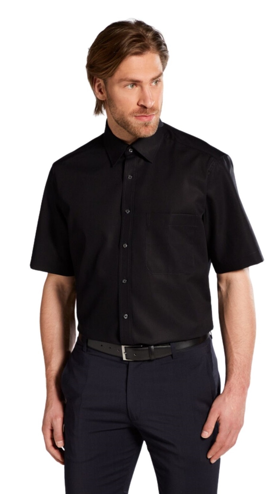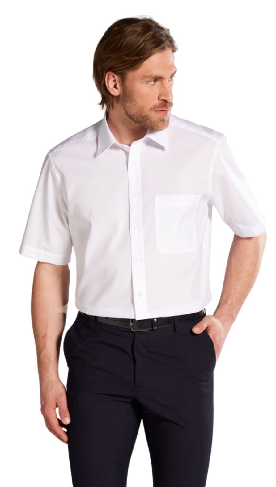 Egal ob im Büro oder in der Freizeit, mit diesem zeitlosen Klassiker ist ''Mann'' stets gut angezogen! Kombinieren Sie dieses unifarbene Kurzarmhemd, mit Basic Kent-Kragen und praktischer Brusttasche, in der Freizeit mit Jeans und Sneakers oder im Büro elegant zum Anzug mit Krawatte und ein stilvoller Auftritt ist Ihnen versichert. Gefertigt ist dieses Herrenoberhemd aus feinster Baumwoll-Qualität und in bequemer Schnittführung (100% Baumwolle, bügelfrei).