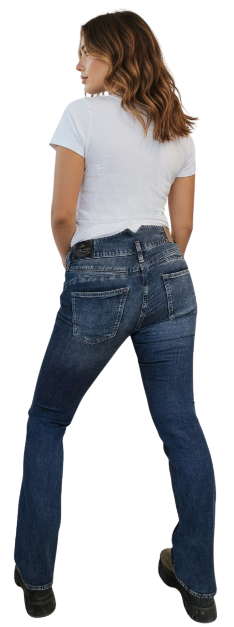 - Kurzbeschreibung: Bootcut Jeans Damen, Aufsteigender Spitzbund hinten, Breite Gürtelschlaufen, Fußweite: 42 cm, unser Model trägt die Größe 30 und ist 174 cm groß