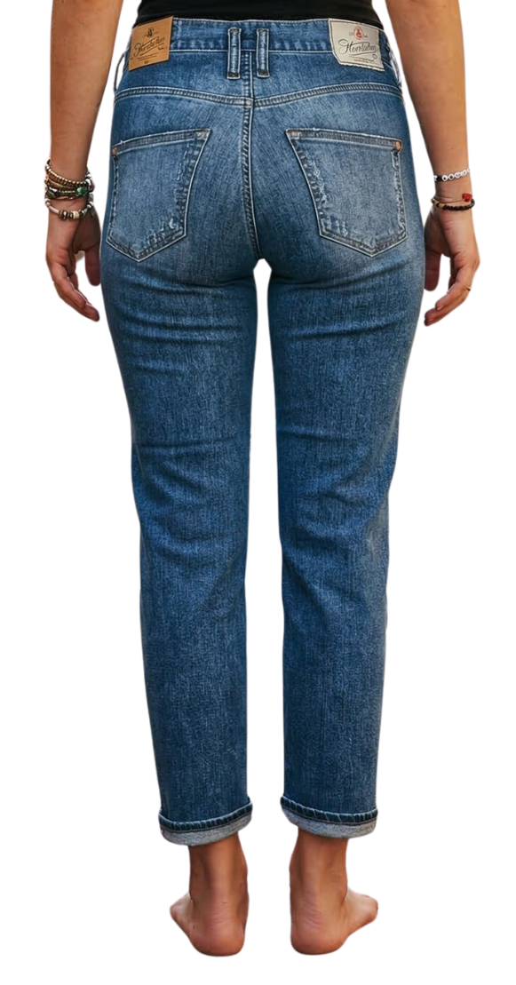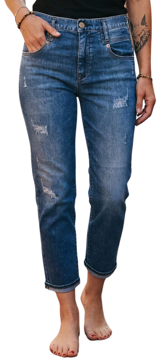 - Kurzbeschreibung: Verstärkung unterhalb des Bundes, Shaping Abnäher in den Vordertaschen, Tiefer runder Tascheneingriff, Cropped aus hochwertigem Baumwolldenim, destroy Stellen ,